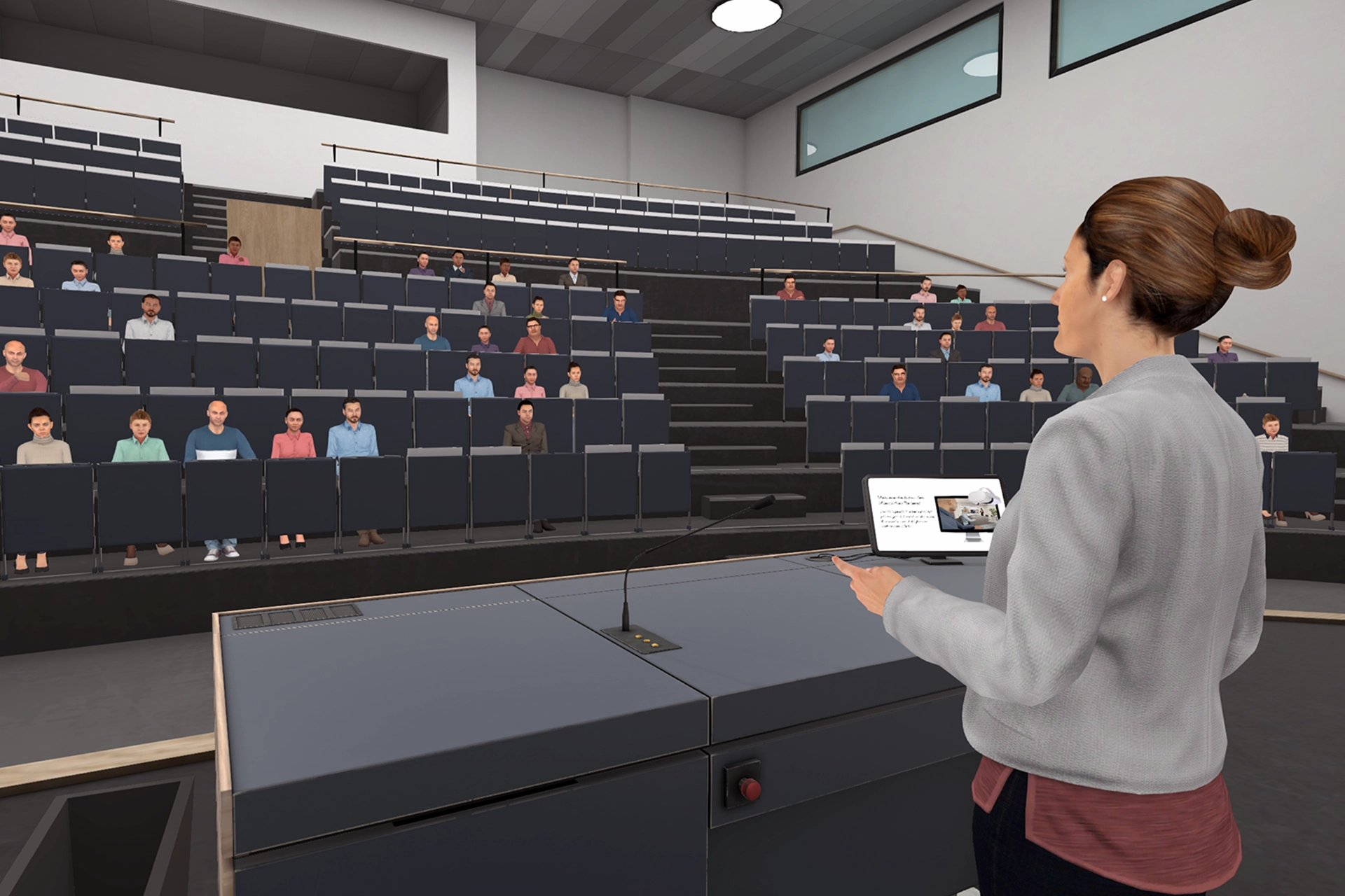 Public Speaking bedeutet mehr als Worte. Es geht um Präsenz, Wirkung und die Fähigkeit, Menschen wirklich zu erreichen. Der VR Speech Trainer unterstützt Sie dabei, Selbstvertrauen aufzubauen, Ihre Kommunikationsfähigkeiten gezielt weiterzuentwickeln und auch in anspruchsvollen Situationen sicher aufzutreten.
